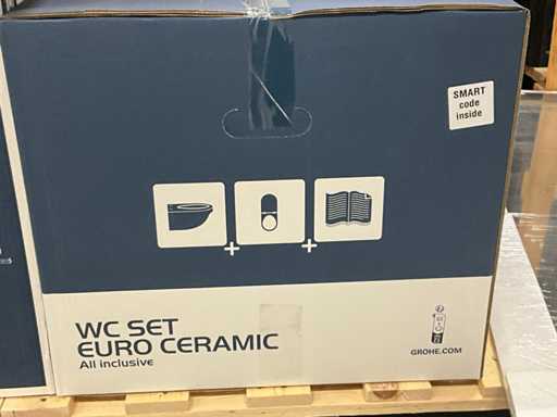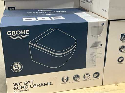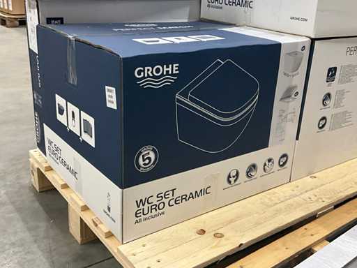 WC a parete GROHE Euro Ceramic e la elegante piastra di sciacquone Arena Cosmopolitan con finitura lucida in cromo GROHE Long-Life. Grazie al sistema GROHE FastFixation, puoi posizionare il water su una parete o tra una parete divisoria in pochissimo tempo. Sedile del WC con chiusura morbida