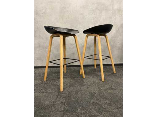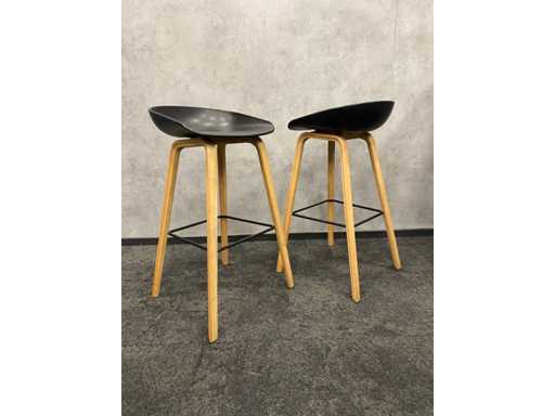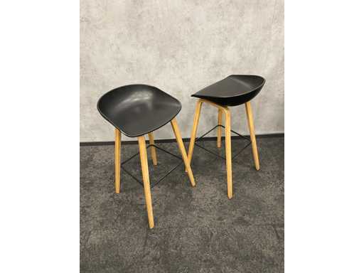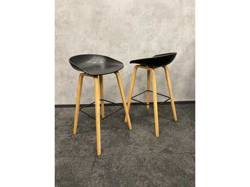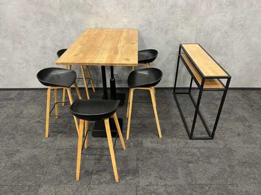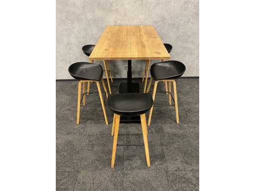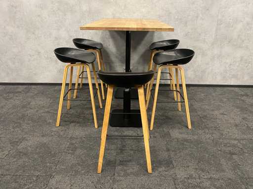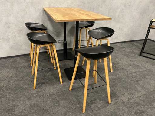 lotto composto da 5 sgabello da bar HAY design — 1 tavolo da bar satellitare. Afm. circa hxbxd 110140x80 cm. -- 1x tavolino laterale. Afm. circa hxbxd 90x120x30 cm.