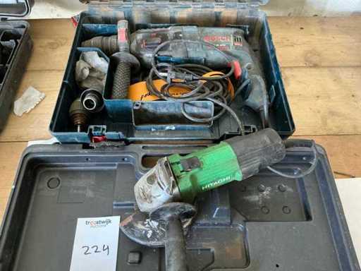 Comprende: trapano a martello Bosh, smerigliatrice angolare Hitachi 230v.