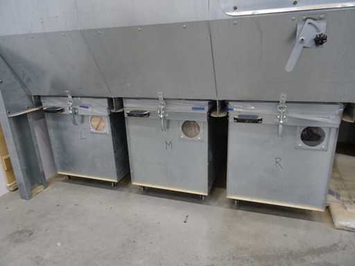 Diametro: 350mm, Capacità: 140m3/min, 7,5kW, superficie filtro 53 m2, 3 x raccolta mobile e 250 litri.