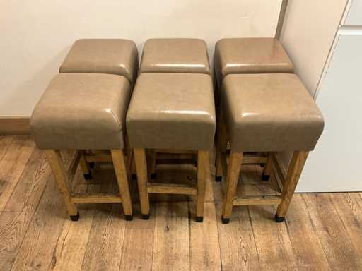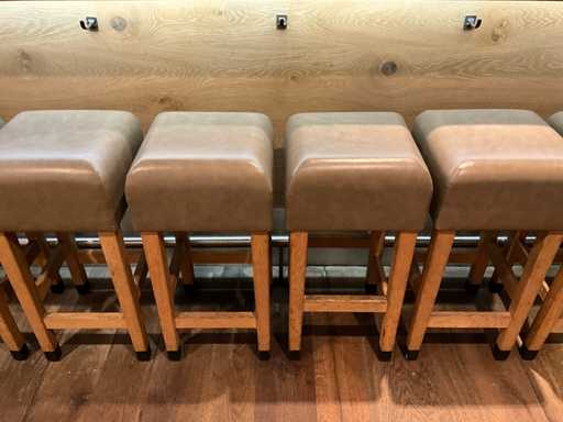 Huts - Sgabello da bar in legno con seduta in pelle (12x)