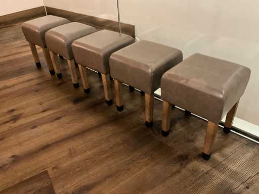 Huts - Sgabello in legno con seduta in pelle (5x)