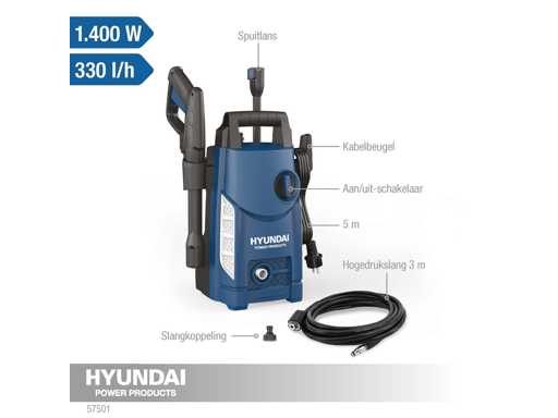 • L'idropulitrice HYUNDAI Home è appositamente progettata per una pulizia approfondita di diverse superfici, come patii, auto e mobili da esterno. Con un potente motore da 1.400 W, questo pulitore ad alta pressione eroga un getto d'acqua regolabile con una pressione impressionante fino a 105 Bar e un'erogazione d'acqua fino a 330 L all'ora.