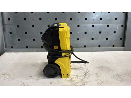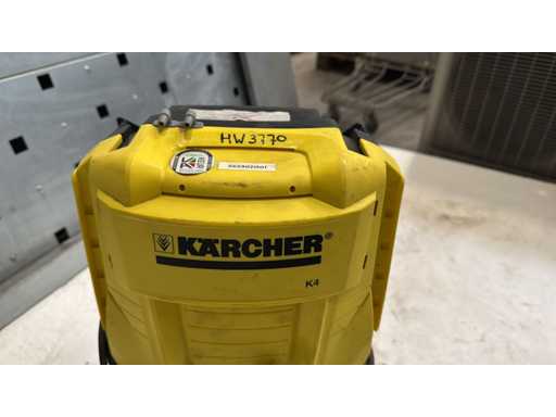 Idropulitrice Kärcher K4; Idropulitrice mobile; modello K4, con maniglia di trasporto e collegamento al tubo; Esecuzione di cantieri/officine; Condizione usata con segni visibili di usura; Adesivo per numero di serie disponibile; Detergente funzionale adatto a una pulizia a pressione versatile;