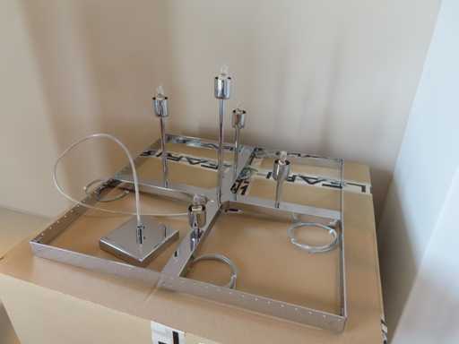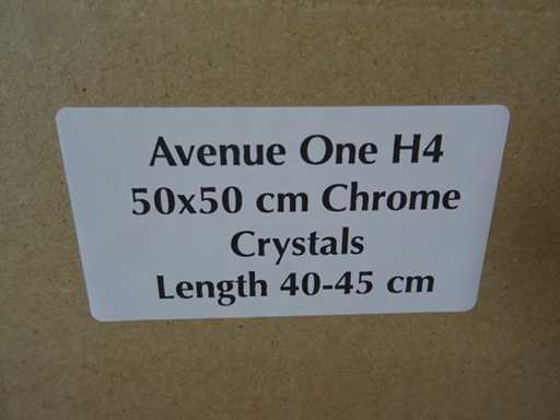 Colore: cromo; Numero di sorgenti luminose: 5; è una lampada a pendolo quadrata, le foto dettagliate aggiuntive del cristallo mostrano un modello rotondo; Dimensioni: 40x50x50 cm (Altezza x Larga). La confezione mostra il modello H4 ma è un modello H5