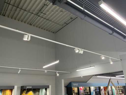 Questo lotto deve essere smontato professionalmente dall'acquirente. Il terreno è composto da circa 110 metri con fasci LED e 100 metri di rotaie con punti LED. Il lotto è montato a circa 4 metri di altezza e è appeso a circa 3,5 metri di altezza