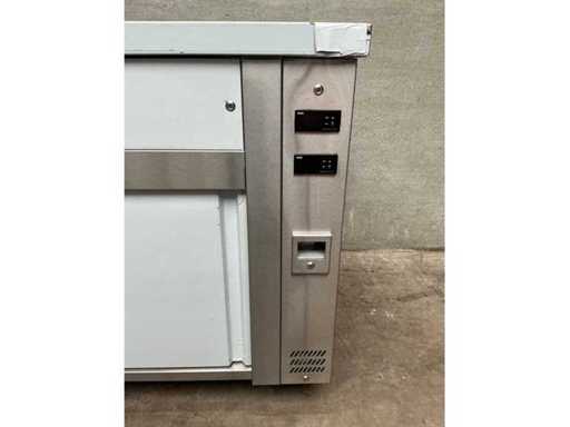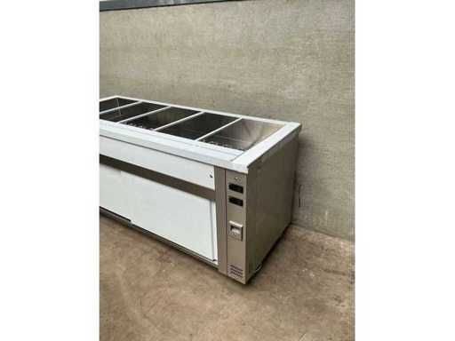 Au-bain-marie in acciaio inossidabile, capacità 5 vassoi gastronorm 1/1, due porte scorrevoli con mobile riscaldante, inutilizzati