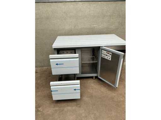 Banco da lavoro refrigerato in acciaio inox con 2 cassetti, 1 porta battente e 1 griglia regolabile in altezza