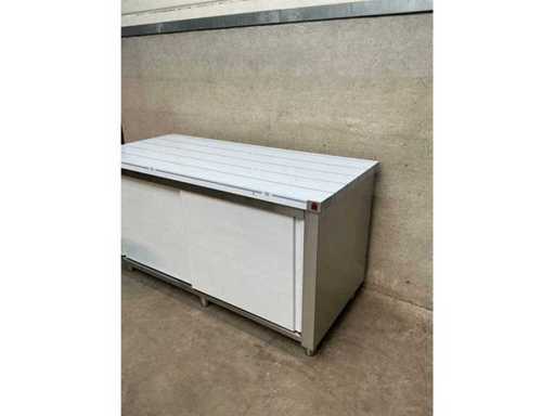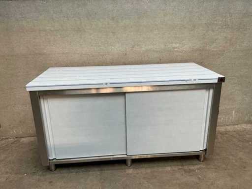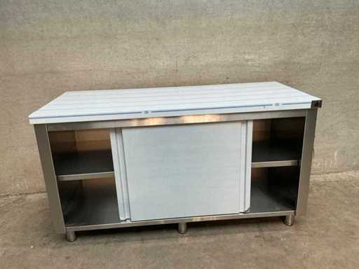 Tavolo da lavoro in acciaio inossidabile con 2 porte scorrevoli e 1 mensola regolabile in altezza
