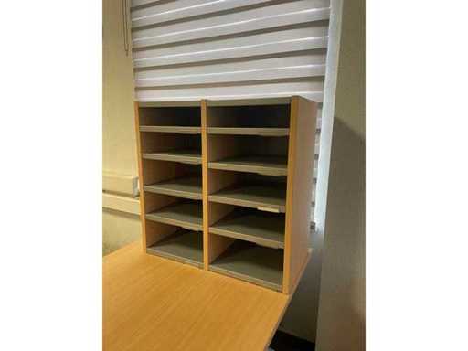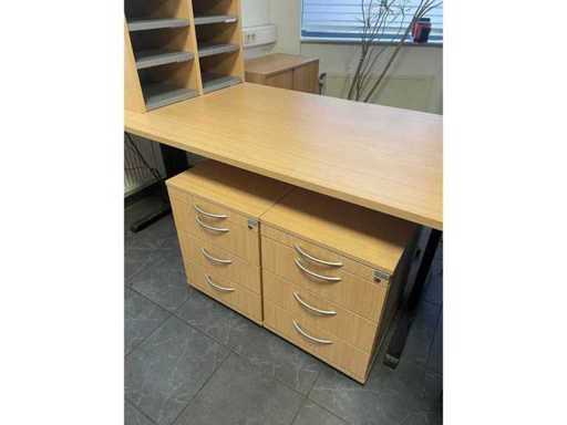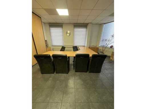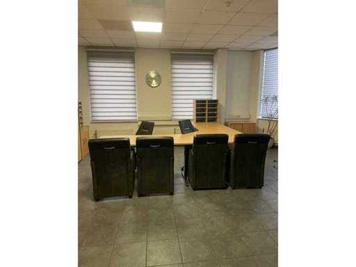 4 x Scrivania 160x80 1 x Pezzo d'angolo 120x120 2 x mobile cassetto 2 x Case low 73x80x40 1 x Case High 281x80x40 1 x Armadio a piastra di gamba 68x70x40 2 x Pelle per sedie da ufficio 4 posti a sedere per metà pelle / Alcantara