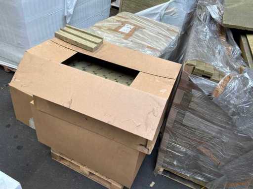 2 pallet di isolamento e accessori di isolamento composti da: 1 pallet di Rockwool Mono (1000x180x80mm), 1 pallet di strisce isolanti (1000x60mm), 2 pacchetti di Rockwool (1200x1000x80mm) e 3 scatole di accessori.