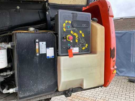 Utilizzo: all'aperto; Terreno accidentato; altezza del piano del marciapiede 20300 mm; fiocco articolato; capacità serbatoio carburante 117 litri; motore diesel Deutz; controllo della gabbia; Piattaforma di collegamento di alimentazione a 230 Volt; larghezza di binario 500 mm; generatore di energia integrato; condizioni di lavoro; documenti di registrazione olandesi; senza un certificato di conformità; (TLD-25-G)