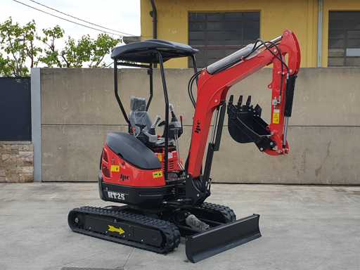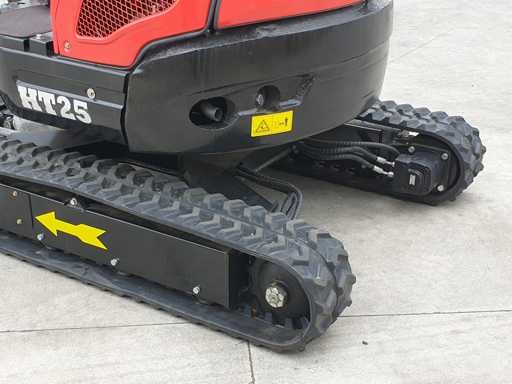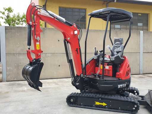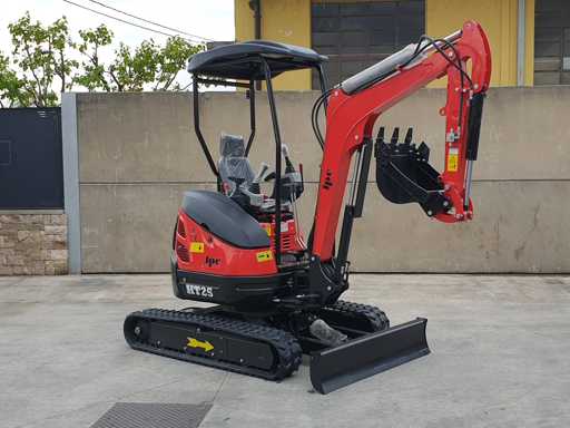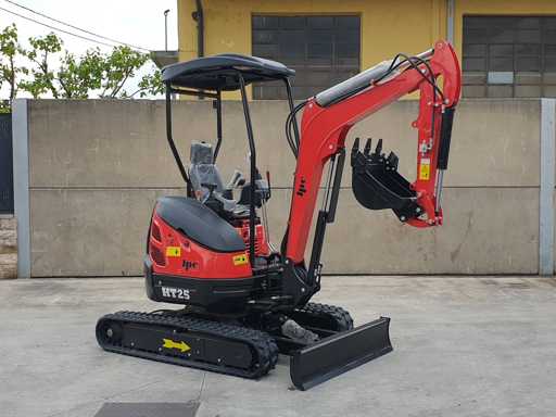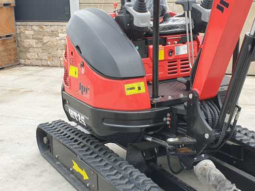 Miniescavatore cingolato modello JPC HT25, dotato di ralla rotazione 360 gradi, braccio oscillante, joystick di comando, impianto ausiliario per martellone, comandi elettronici, motore 3 cilindri raffreddato ad acqua, mai usato, 0 ore