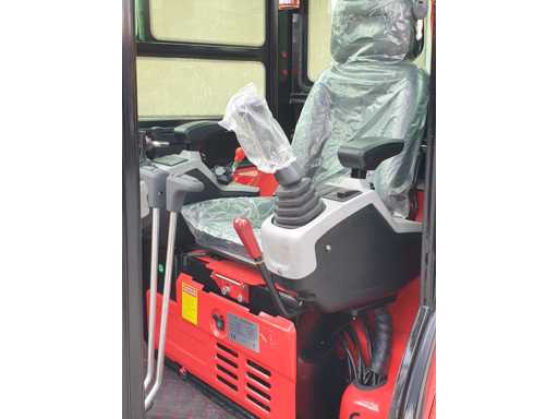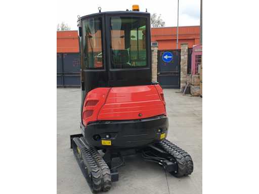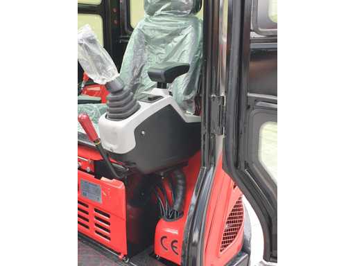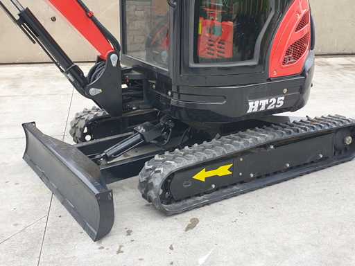 Miniescavatore cingolato modello JPC HT25, cabina in vetro, dotato di ralla rotazione 360 gradi, braccio oscillante, joystick di comando, impianto ausiliario per martellone, comandi elettronici, motore 3 cilindri raffreddato ad acqua, mai usato, 0 ore