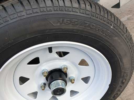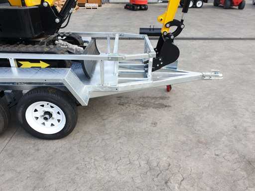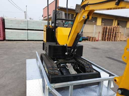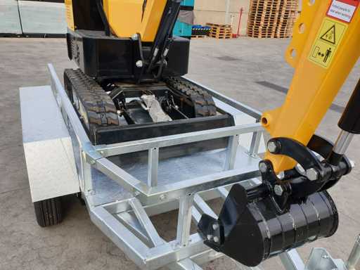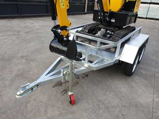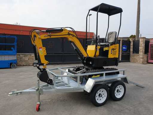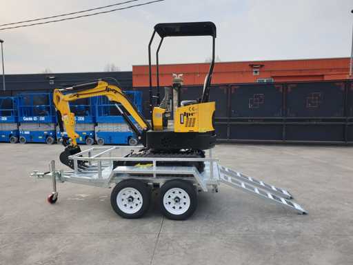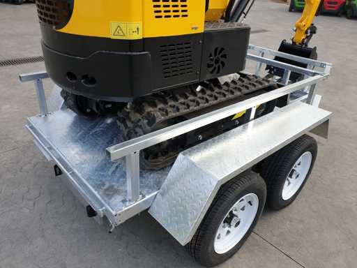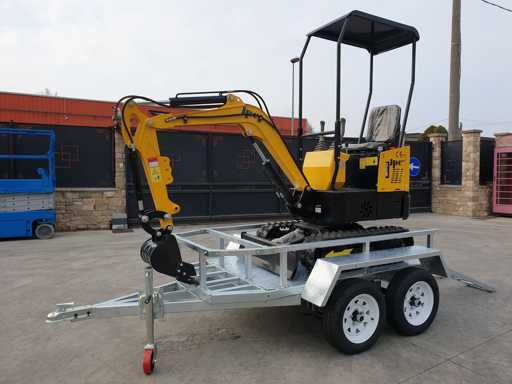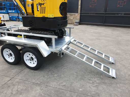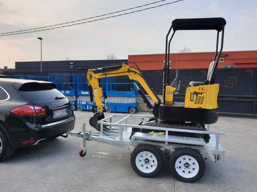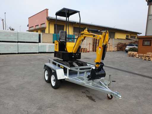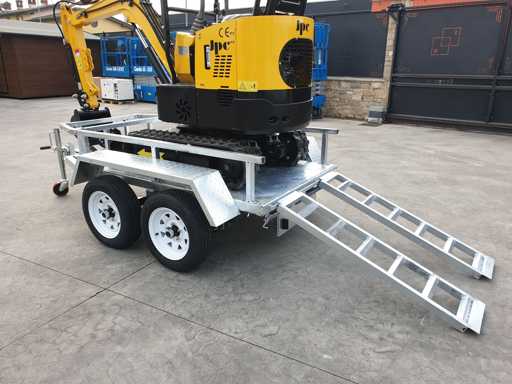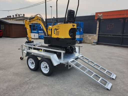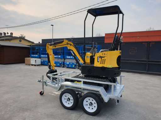 Rimorchio completo di escavatore Rimorchio 4 gomme per trasporto escavatori, massa totale 1130 kg, sospensioni a balestra, 4 gomme 165/70/13, gancio attacco rapido, mai usato non immatricolato per uso stradale, escavatore JPC HT 12 anno 2022 motore KOOP accensione elettronica, rotazione ralla 360 gradi, attacco idraulico per martellone e accessori