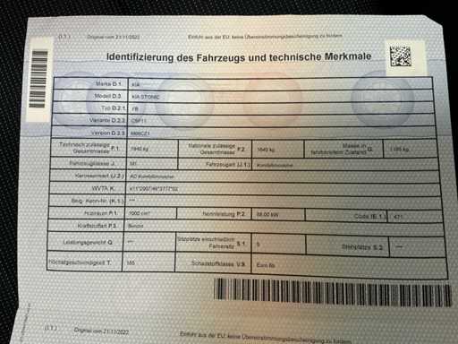 Kia Stonic con motore benzina 1.0 T-GDi (88 kW) e cambio manuale. Prima registrazione 17/08/2018. Chilometraggio circa 165.278 km (leggi). Classe di emissioni Euro 6b. Documenti di registrazione belgi disponibili. Il veicolo mostra segni normali di usura in base all'età e al chilometraggio.