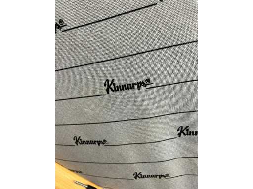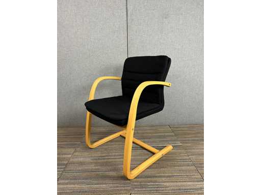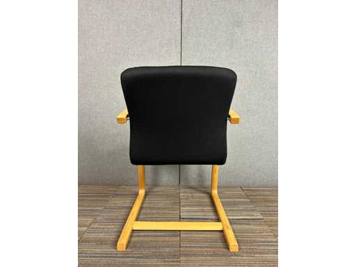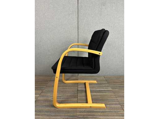 Sedie da conferenza Kinnarps, base a sbalzo in legno, sedile e schienale in tessuto nero, con lievi segni di usura