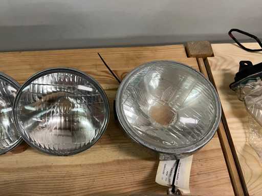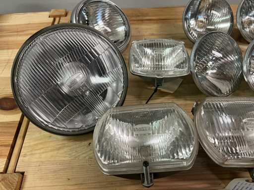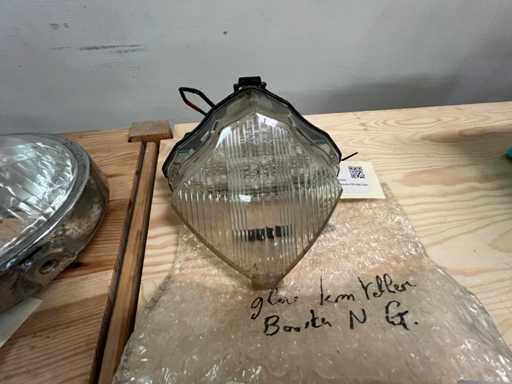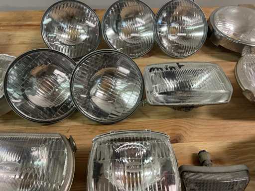 Batch of 18 headlights and lenses, mainly from the KOITO brand, some original Yamaha parts (including part number 4SB-H3535K-00).