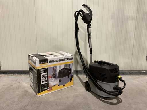 Dotato di funzione wet-dry e dry; protezione contro il surriscaldamento; aspirapolvere bagnato e asciutto; Funzione a vapore; Funzione spray; Capacità: 30 litri; Caldaia in plastica; 2100W; 2 ruote giretrici; 2 ruote rigide funzione di spruzzo e aspirazione; Non utilizzato in scatola (Dimensioni imballaggio da trasporto 615x435x545 mm lxwxh, peso 13,8 kg)