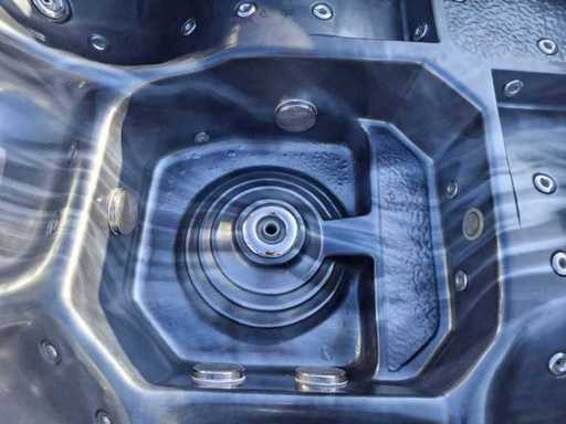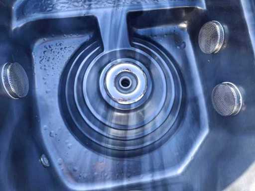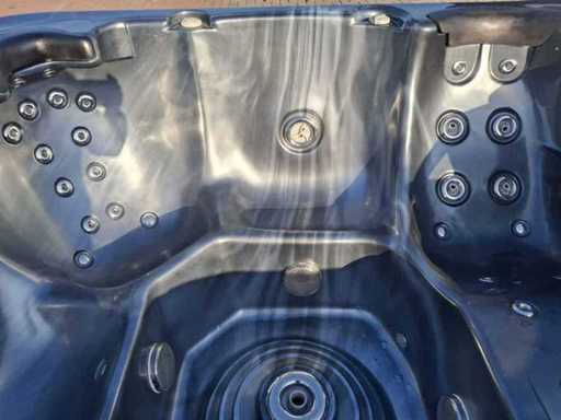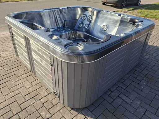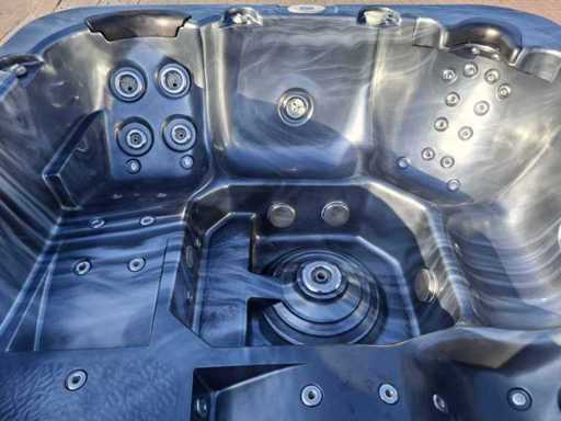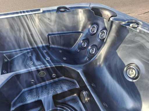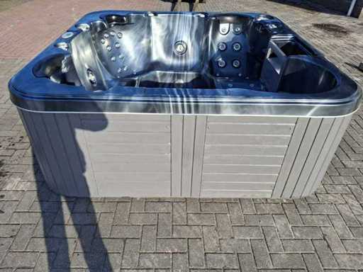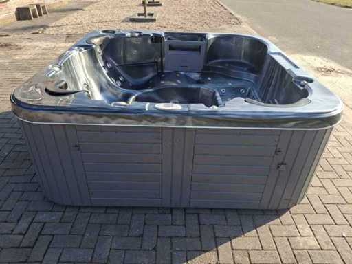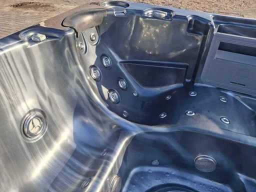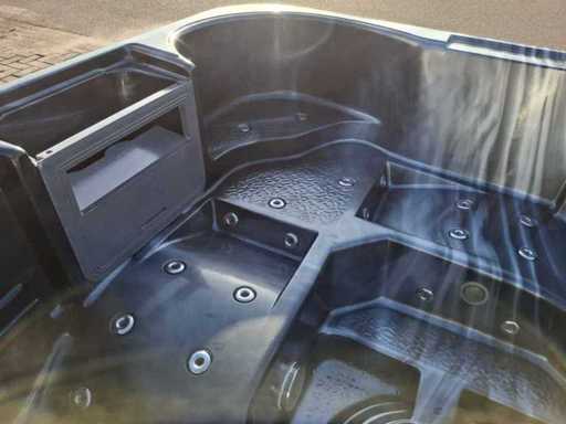 Dotato di 2 cucche; 3 seggi; Getti massaggianti in acciaio inox; involucro in plastica; cuscini; sistema di filtrazione automatico; Non testato per il funzionamento (margine, senza IVA)