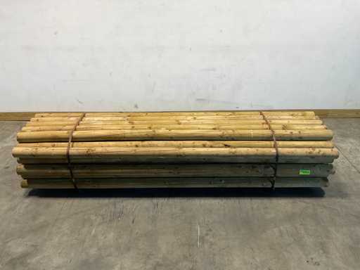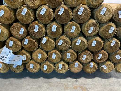 Palo rotondo, tagliato ad angolo retto con taglio a angolo retondo, 1 lato coronato ø10 x 300 cm. Il legno è lisciato e liscio. Un lato è accorciato ad angolo retto, l'altro lato è coronato.