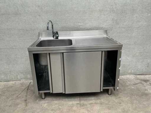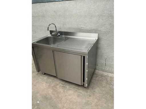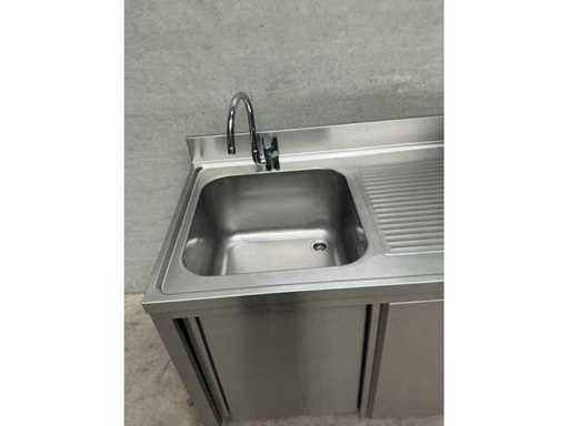 Lavandino in acciaio inox, 1 lavandino 50x50x29 cm, rubinetto, bordo rialzato e 2 porte scorrevoli