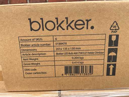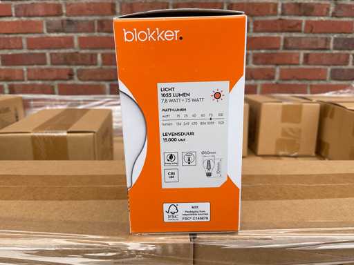 La sorgente luminosa a LED con attacco E27 ha una potenza di 7,8 watt, è dimmerabile e funziona con una tensione di 220-240 volt. L'etichetta energetica di questa lampada è D. La lampada eroga 1055 lumen di luce con una temperatura di colore di 2700 Kelvin, che fornisce una luce bianca calda. Grazie alla tecnologia LED, la lampada offre un'emissione di luce diretta e una durata maggiore rispetto alle tradizionali lampadine a incandescenza. Si prega di notare che questo lotto ha uno stock totale di 847 sorgenti luminose. Questi sono divisi in 142 scatole da 6 pezzi, una delle quali non è completamente riempita.