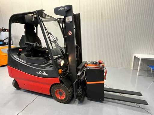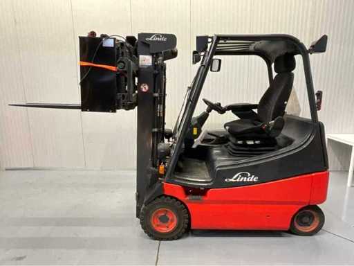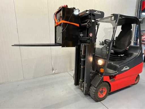 Linde E20-02 - Carrello elevatore - Impostatore di forcelle - Cambio laterale - Sollevatore libero - caricabatteria - Bluespot posteriore