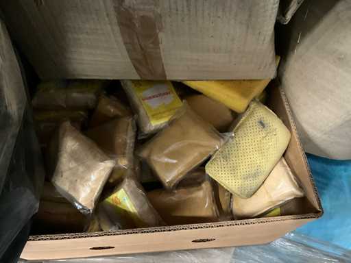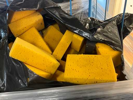 Inclusi spugni semifiniti, spugna per camoscio da finestra e vari contenitori in 8 contenitori rotoli senza contenitori rotoli, per un totale di circa 30 metri cubi