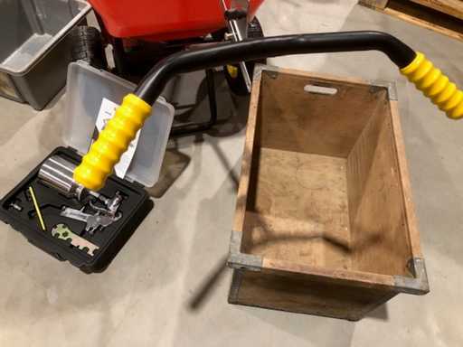 Lotto di carrelli, ruote, casse e spruzzatore di vernice usati e inutilizzati (14x)