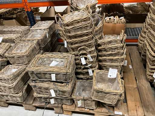 Contenuto su 4 pallet composti da cesti di varie dimensioni, da 17 a 45 cm