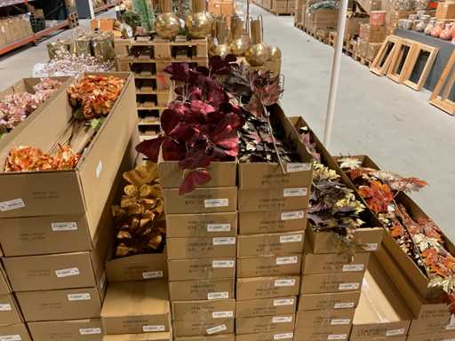 Contenuto su 3 pallet composto da Ortensia, Ramo di farfalla, Foglia d'acero, compresi i pallet.