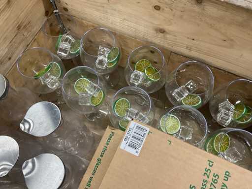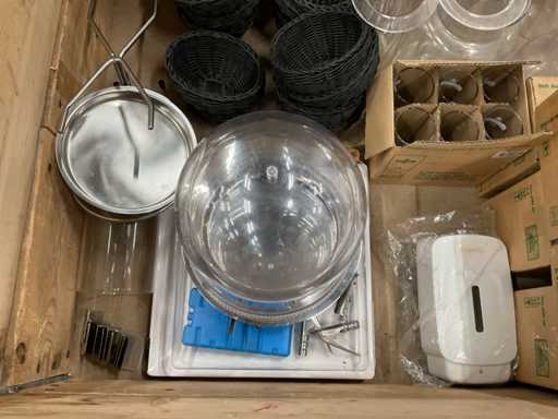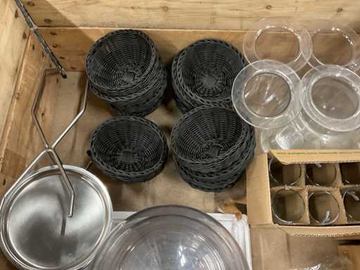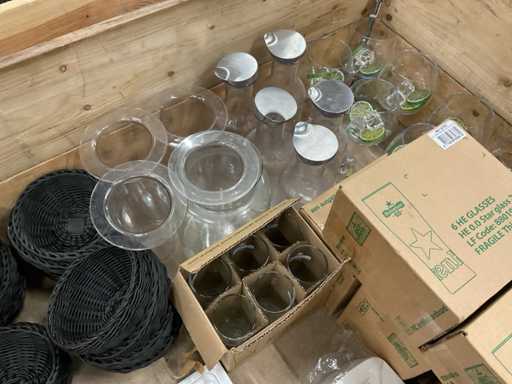- o.a. karaffen, vlechtwerk manden, cocktail glazen met toebehoren, etc.