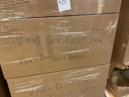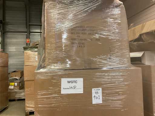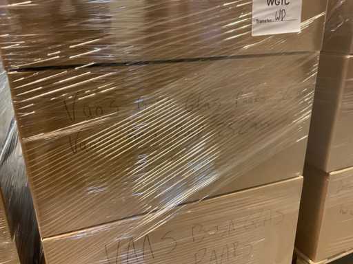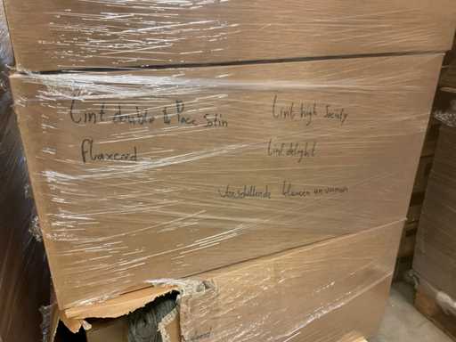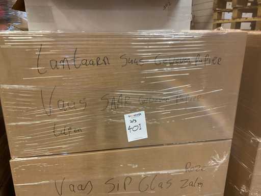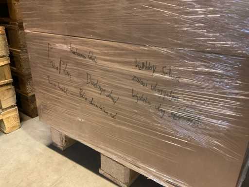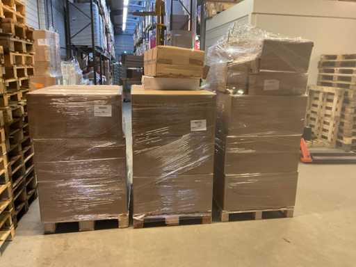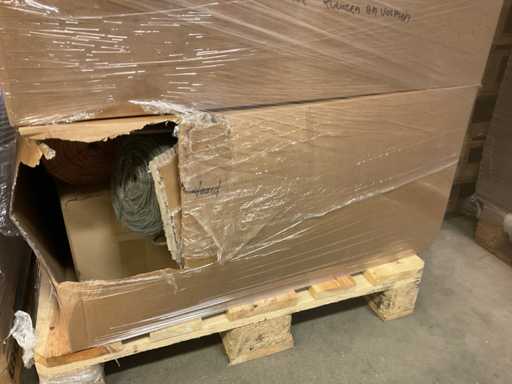 Composto da 3 pallet con scatole di materiali da imballaggio. Comprese cappelliere, schiuma a cuore, scatole a cuore, filo a mezzaluna, vari vasi, vari tipi di nastri, ecc.