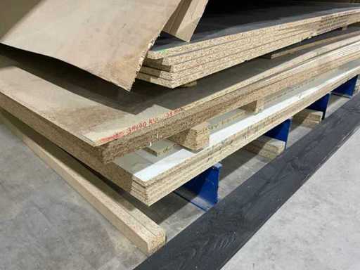 Composto, tra le altre cose: cartone truciato, pannelli MDF, compensato, pallet: spessori e dimensioni varie, anche lastre MDF dietro la macchina, si prega di notare il ritiro direttamente alle 9 del mattino il giorno della ritiro!