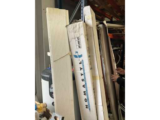 Tra cui vari rotoli di EPDM, alluminio,.., vari pannelli isolanti Decorfelt 58x59cm, lotti di varie laccature e spray, alcuni resti di parquet, fossa di sorveglianza in PVC, 2 vari spruzzatori a pressione e alcuni strumenti da lavoro tra cui pale, maniglie,.., completi di pallet contenenti vari mattoni rivestiti, tegole per tetto e 7 fosse di malta, molier in gesso e piastre di espulsione gyproc, dispensando secondo le istruzioni