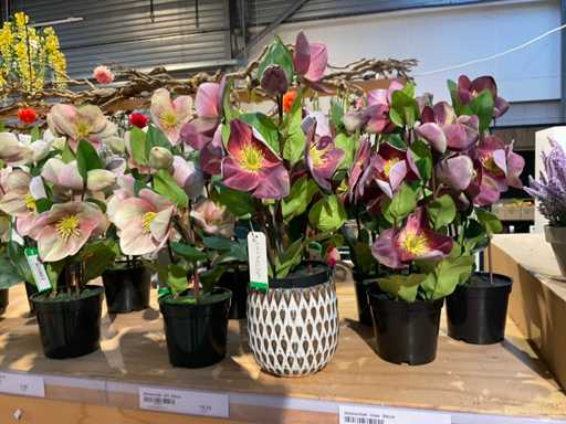 Lotto di Ellebori e Lavanda Piante artificiali in vaso e vasi di vetro, alti 50 cm