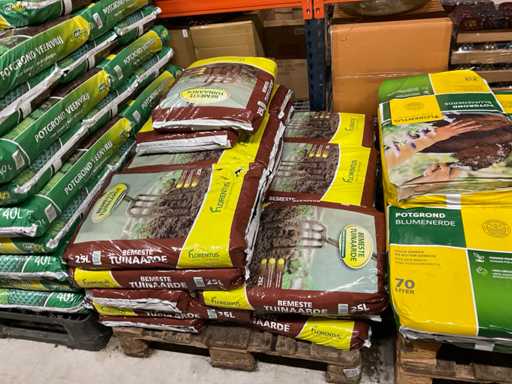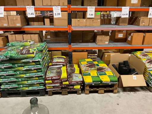 Contenuto su 4 pallet composto da vari tipi di terriccio da giardino e terriccio, compresi i pallet.