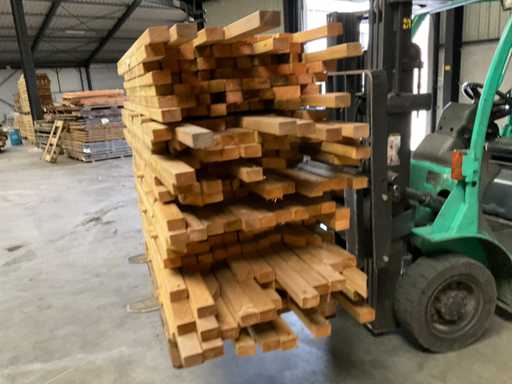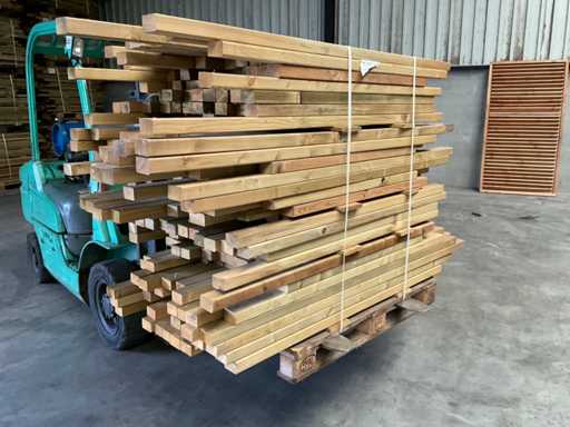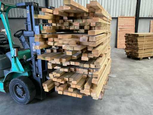 Lotto di travi impregnate di pino 80-180x6,5x4,5 cm. Composto da varie lunghezze 80-180 cm, per un totale di circa 250 metri lineari. Guarda le foto per i dettagli.