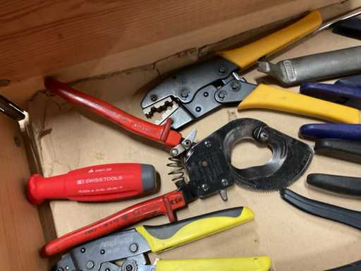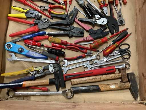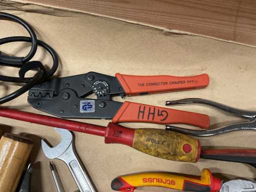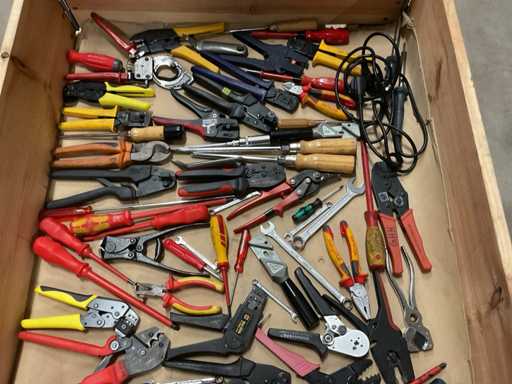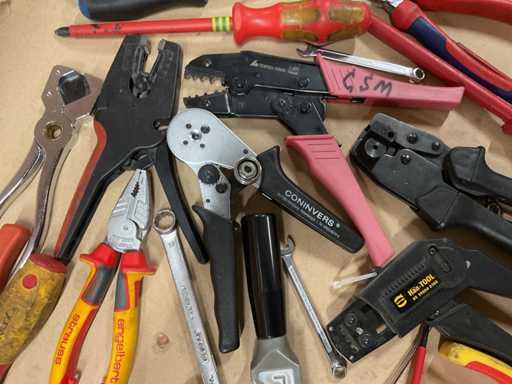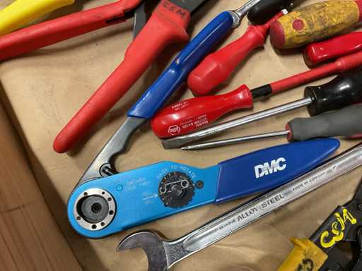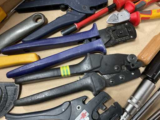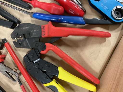 - Inclusi martelli, pinze per crimpare, tagliafili, pinze per sfilare, cacciaviti, chiavi ad anello, saldatrici, ecc.