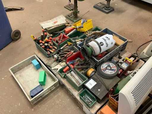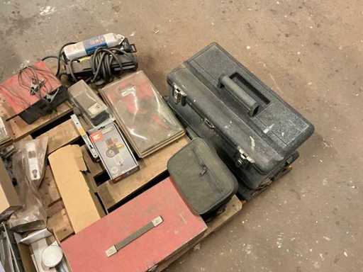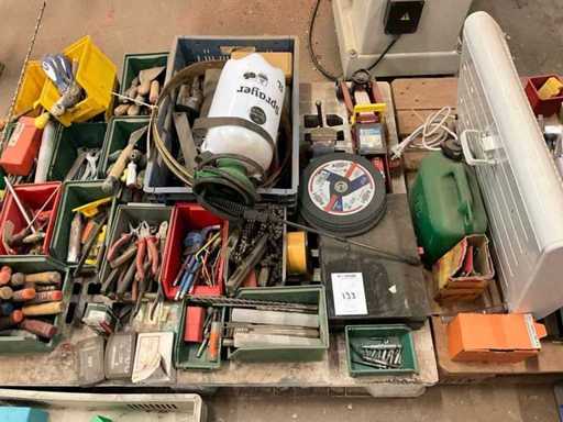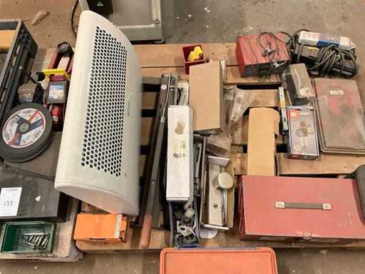 Inclusi i coltelli per stucco; scalpelli; pinze; chiavi; perforazione; ruote abrasive; cric da garage; valigetta degli attrezzi; caricabatterie per batterie; stufa ecc. Su e inclusi 2 pallet