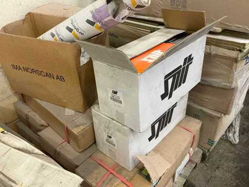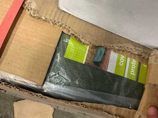 Consiste principalmente in vari appendiabiti rapidi, teloni 12 x 15m e viti Split 10*1000 CS35. Sdraiati su 9 pallet.