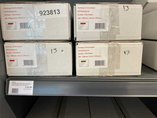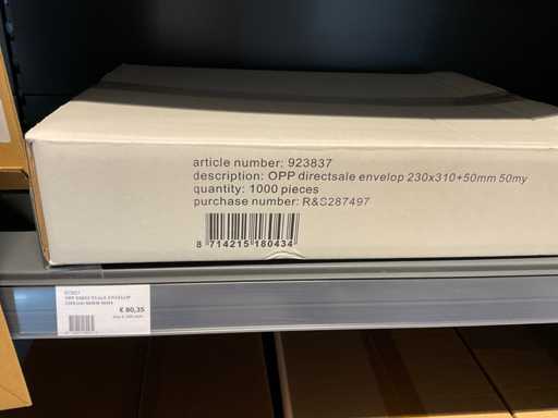 Contenuto di 1 lato dello scaffale, costituito da buste autoadesive, sacchetti postali di carta, sacchetti postali per posta lepe recy, escluso lo scaffale