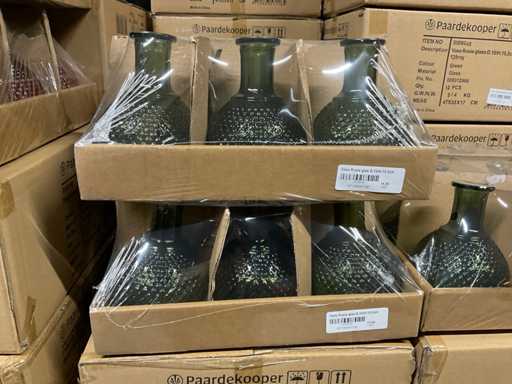 Contenuto su 4 pallet costituiti da vari colori di vasi di vetro alti 18 cm, compresi i pallet.
