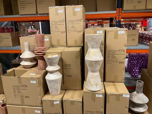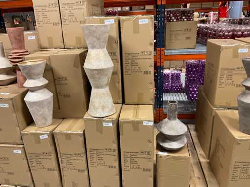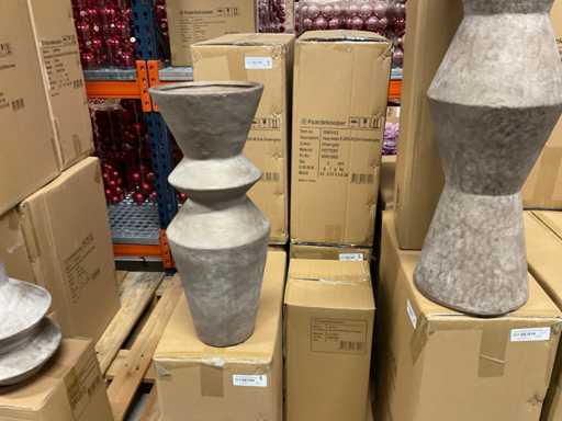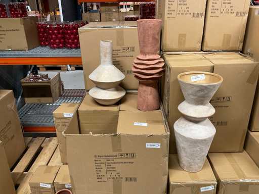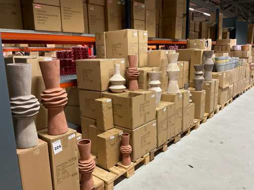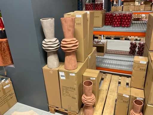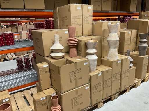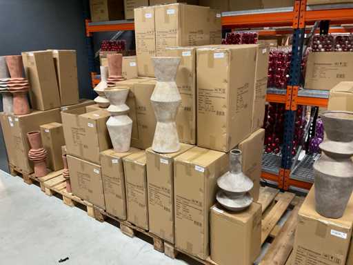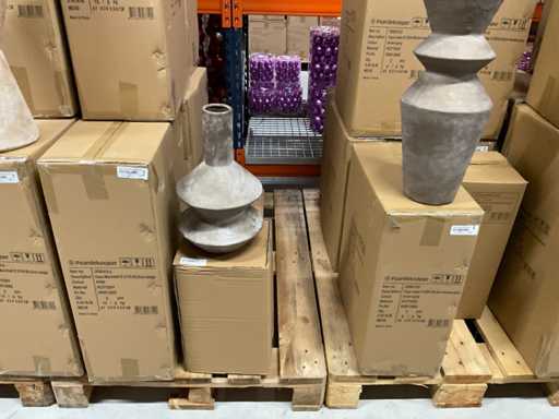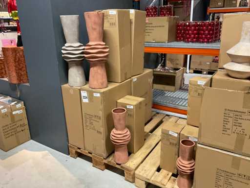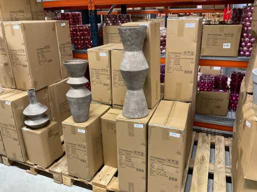 Contenuto su 5 pallet composti da vasi da 36 a 60,5 cm di altezza, compresi i pallet.