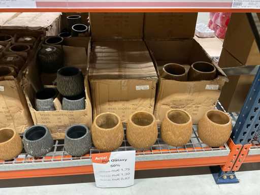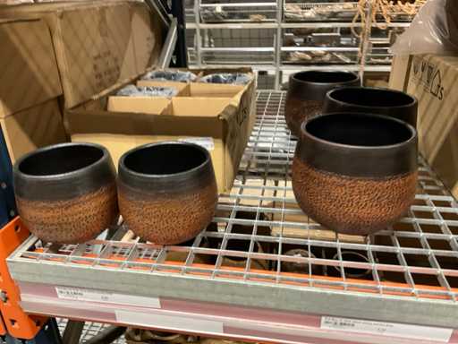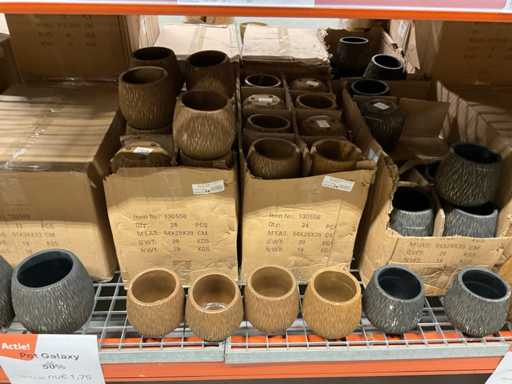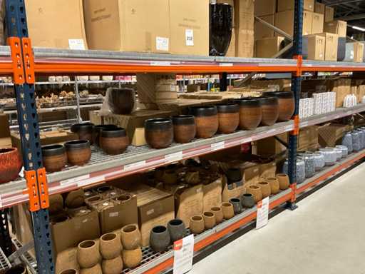 Contenuto di 1 sezione di scaffalature costituite da vasi da 13 cm a 50 cm di altezza, escluse le scaffalature