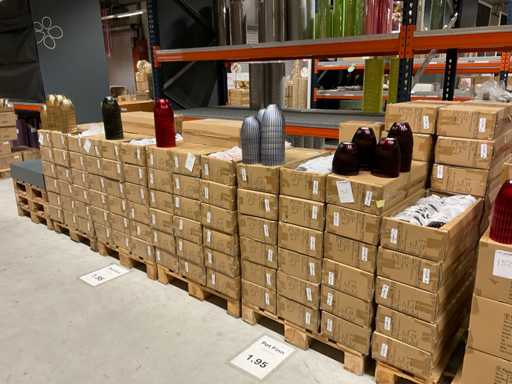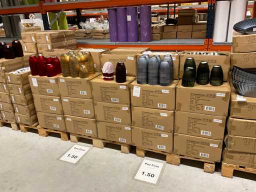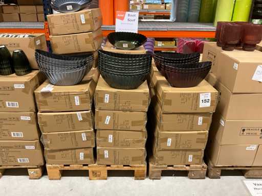 Contenuto su 9 pallet composti da vari colori di pentole e ciotole, compresi i pallet.