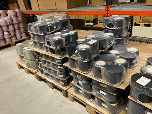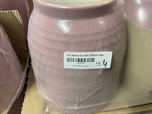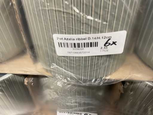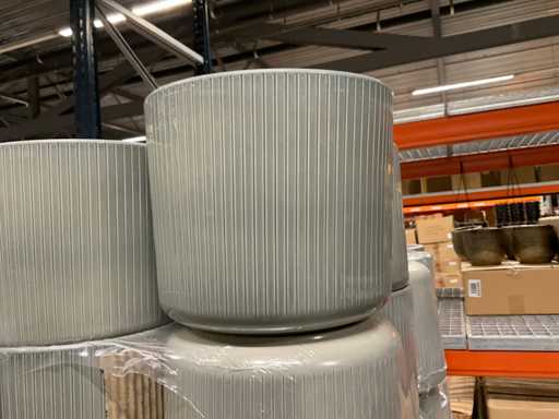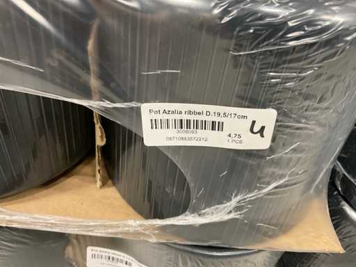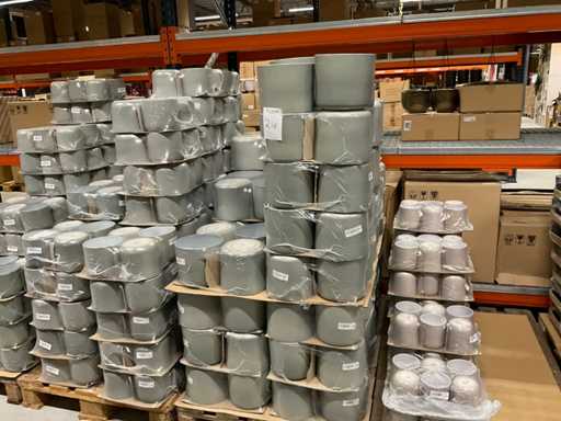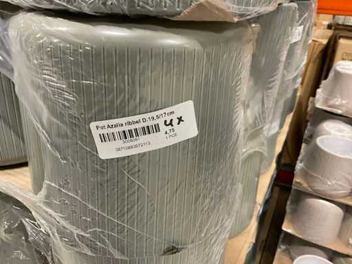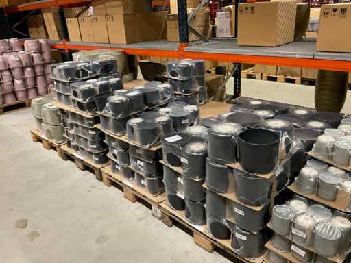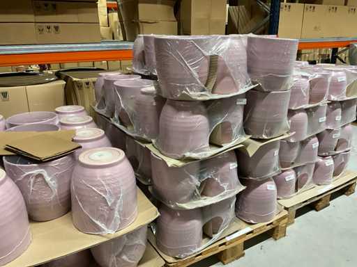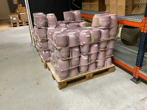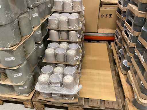 Contenuto su 12 pallet composti da vasi da fiori di varie dimensioni e colori da 19,5 a 27,5 cm di altezza