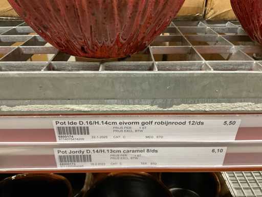 Contenuto di 1 sezione di scaffalatura composta da vasi da 14 cm a 31 cm di altezza, escluse le scaffalature