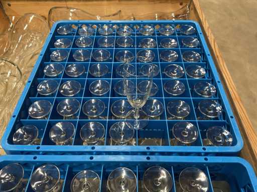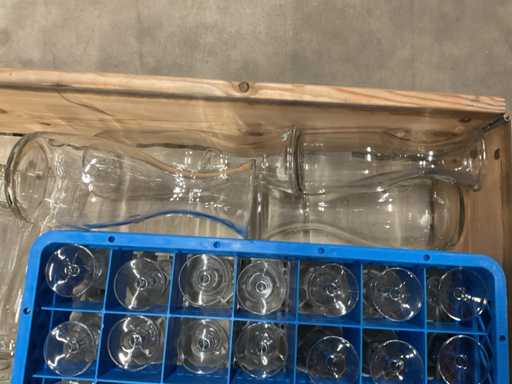 comprese caraffe e bicchieri da champagne, comprese le casse di plastica.
